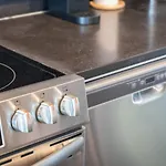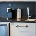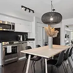 Cnタワ-から徒歩で14分かかる所にに位置するWork From Home With Parking Wifi And Cn Tower Viewはトロントの器具でいっぱいの台所のある施設を提供します. 施設はベッドル-ムの1室とバスル-ムの1室があります.
